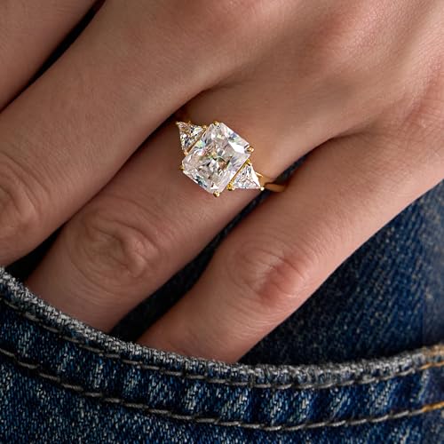 3ct Moissanite Rings for Women, 3 Stone Square Radiant Cut D Color VVS1 18K Gold Plated 925 Sterling Silver, Cut Lab Created Diamond Wedding Promise Fashion Jewelry 5