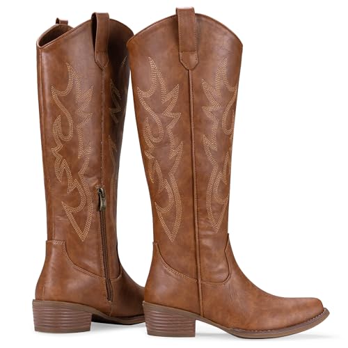 More information about Jeossy Women's Cowboy Boots Embroided Western Cowgirl Boots Square Toe Knee High Pull on Wide Calf Shoes with Inside Zipper