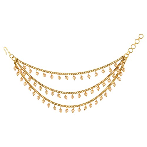 • Embellished with triple layer ear chain, hair accessory, this gold plated ear support chain for women are suitable on ethnic saree, gowns, wedding costumes fashion costume accessories.