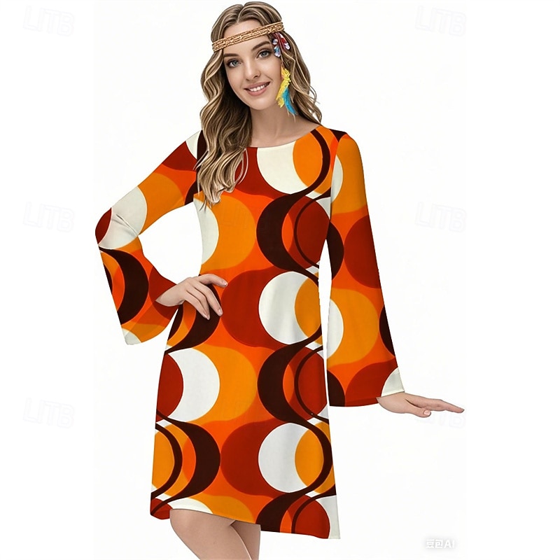 HOT ! Retro Vintage 1970s Groovy Dress Headband Hippie Disco Geometic Psychedelic Fancy Dress Women's Halloween Carnival Vacation Music Festival Festival Adults' Dress Headband