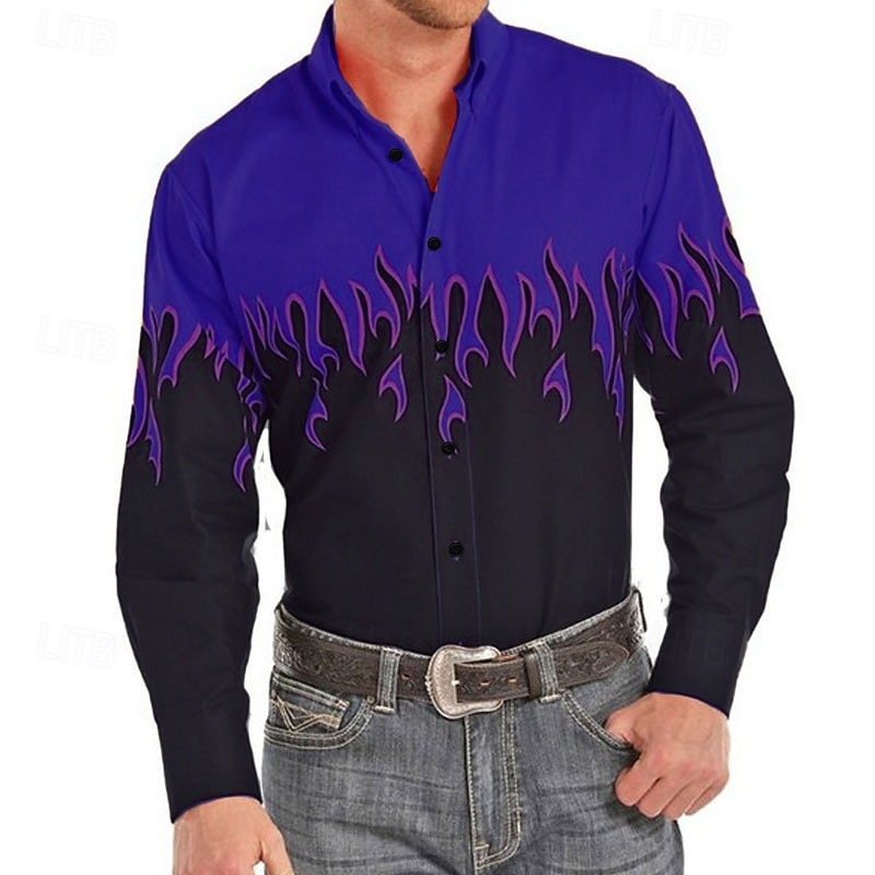 More information about Men's Cowboy Western Shirt Button Up Shirt Cowboy Shirt Long Sleeve Fashion Designer Western Daily Fall & Winter Turndown Collared Shirts 3D Print Front Pocket Red Purple Brown Green Blue+Blue