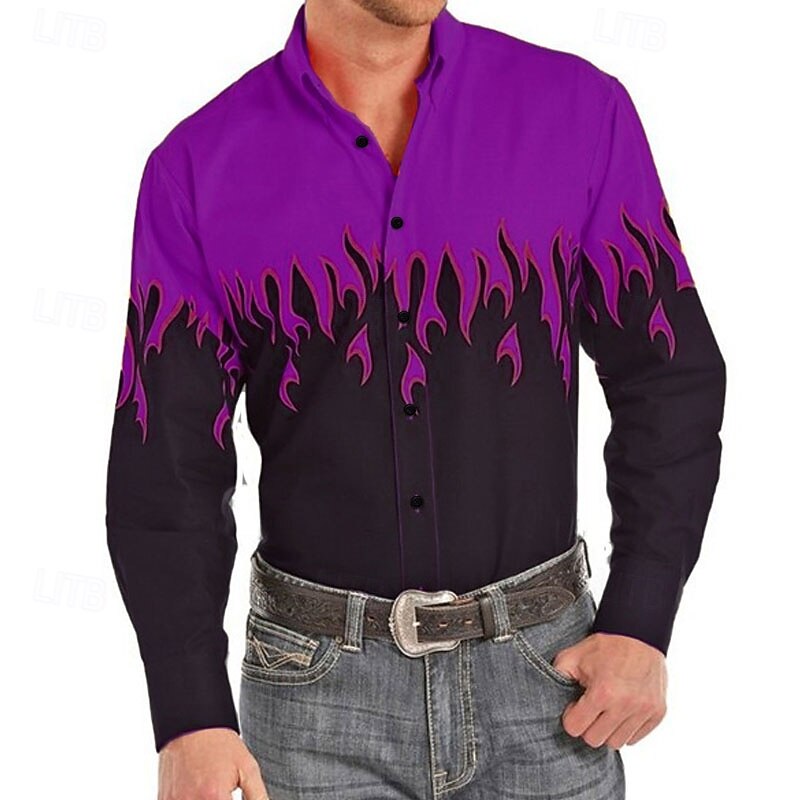 Men's Cowboy Western Shirt Button Up Shirt Cowboy Shirt Long Sleeve Fashion Designer Western Daily Fall & Winter Turndown Collared Shirts 3D Print Front Pocket Red Purple Brown Green Blue+Blue 1