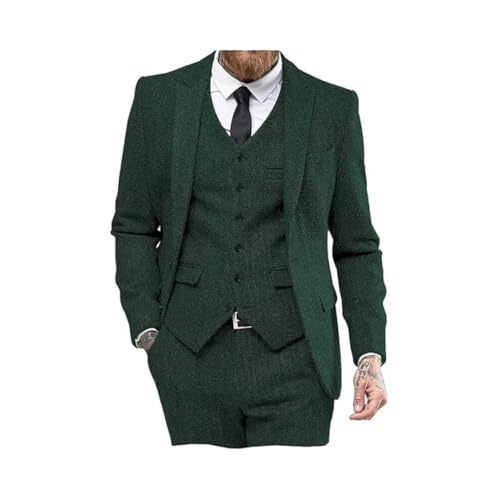 Men 3-Piece Classic Tuxedo Tweed Wool for Wedding (Blazer + Vest + Trousers) 5