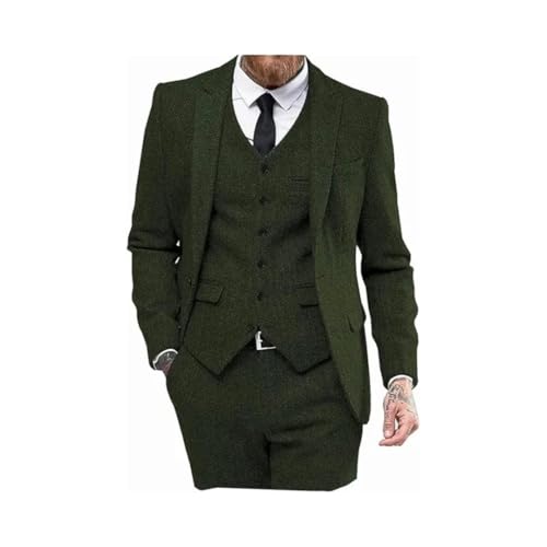 Men 3-Piece Classic Tuxedo Tweed Wool for Wedding (Blazer + Vest + Trousers) 1