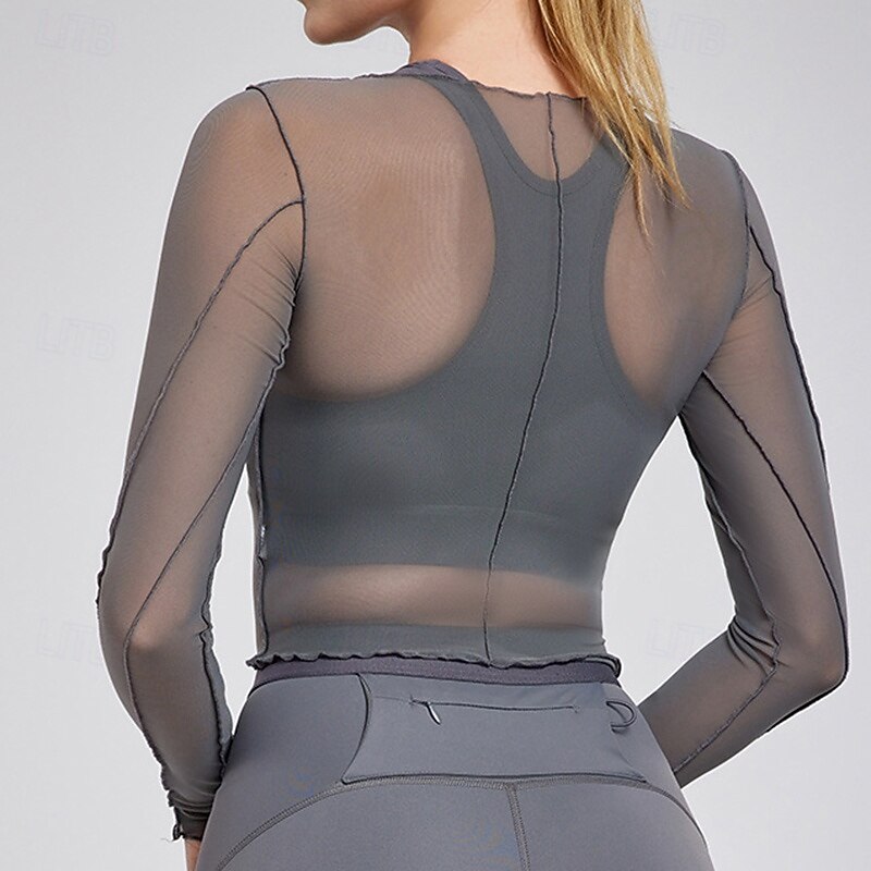 Women's Yoga Shirts Breathable Mesh Long Sleeve Sports Solid Color Top For Gym Athletic Pilates Activewear 4
