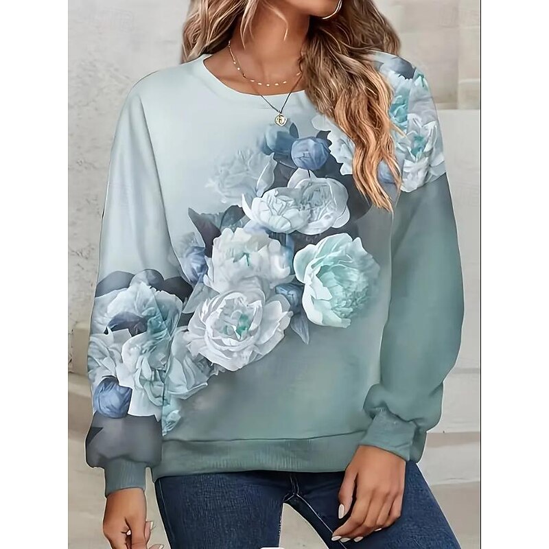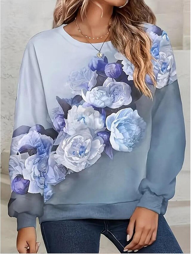HOT ! Women's Sweatshirt Floral Dailywear Going out Print Casual Round Neck Long Sleeve Micro-elastic Spring Fall & Winter Comfrt Breathable Soft Fabric