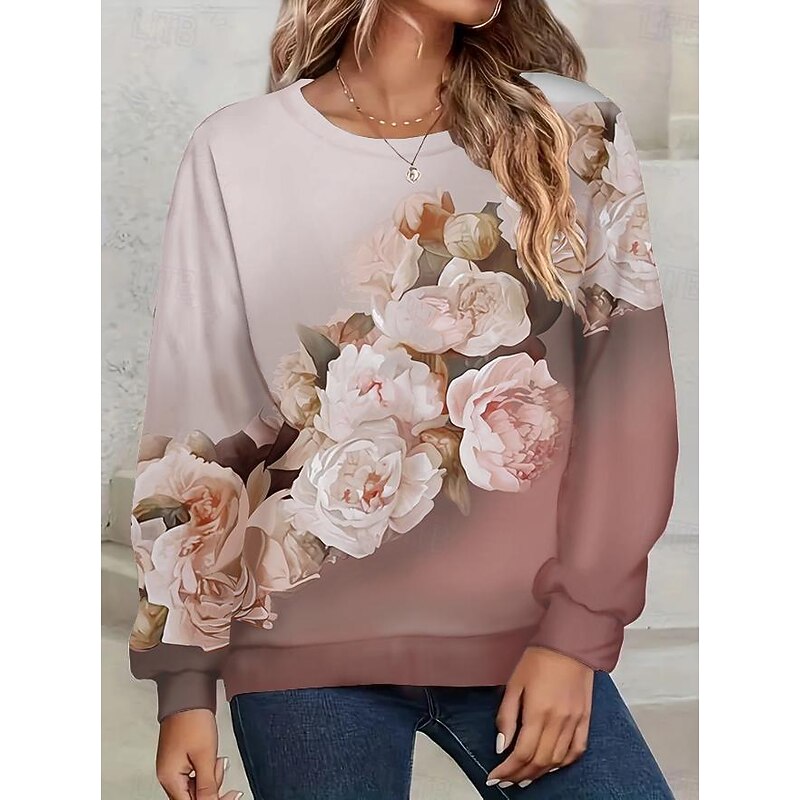 Women's Sweatshirt Floral Dailywear Going out Print Casual Round Neck Long Sleeve Micro-elastic Spring Fall & Winter Comfrt Breathable Soft Fabric 1