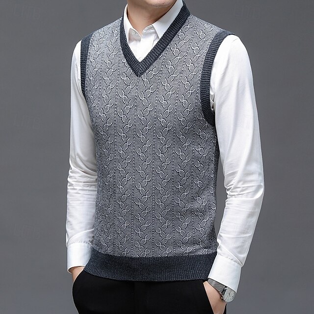 Why Choose Men's Sweater Sweater Vest Pullover Sweater Jumper Ribbed Knit Regular Tops Knitted Slim Fit Geometric V Neck Knitwear Contemporary Casual Daily Wear Clothing Apparel Winter Spring & Fall Blue Dark?