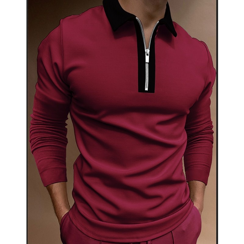 More information about Men's Polo Shirt Quarter Zip Polo Work Casual Classic Collar Quarter Zip Long Sleeve Fashion Business Color Block Patchwork Zipper Winter Fall & Winter Regular Fit Wine Black Navy Blue Green Light