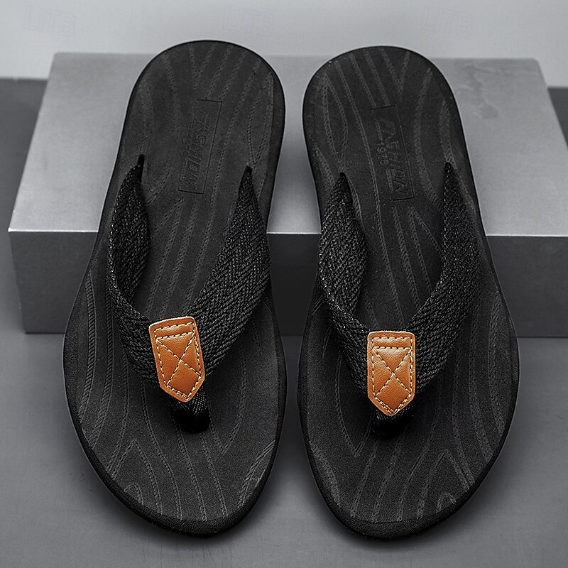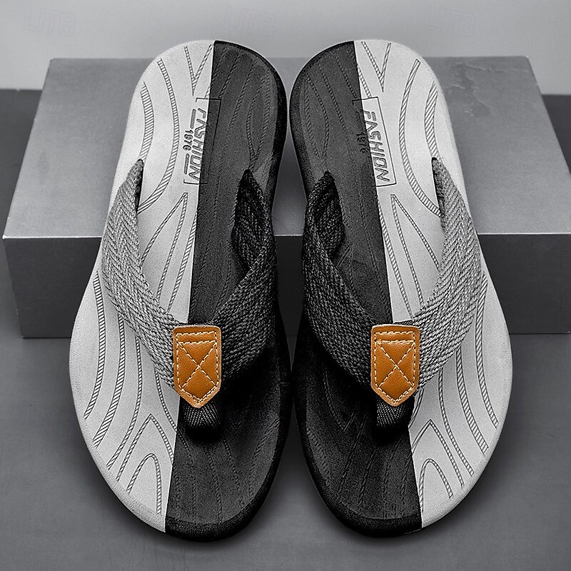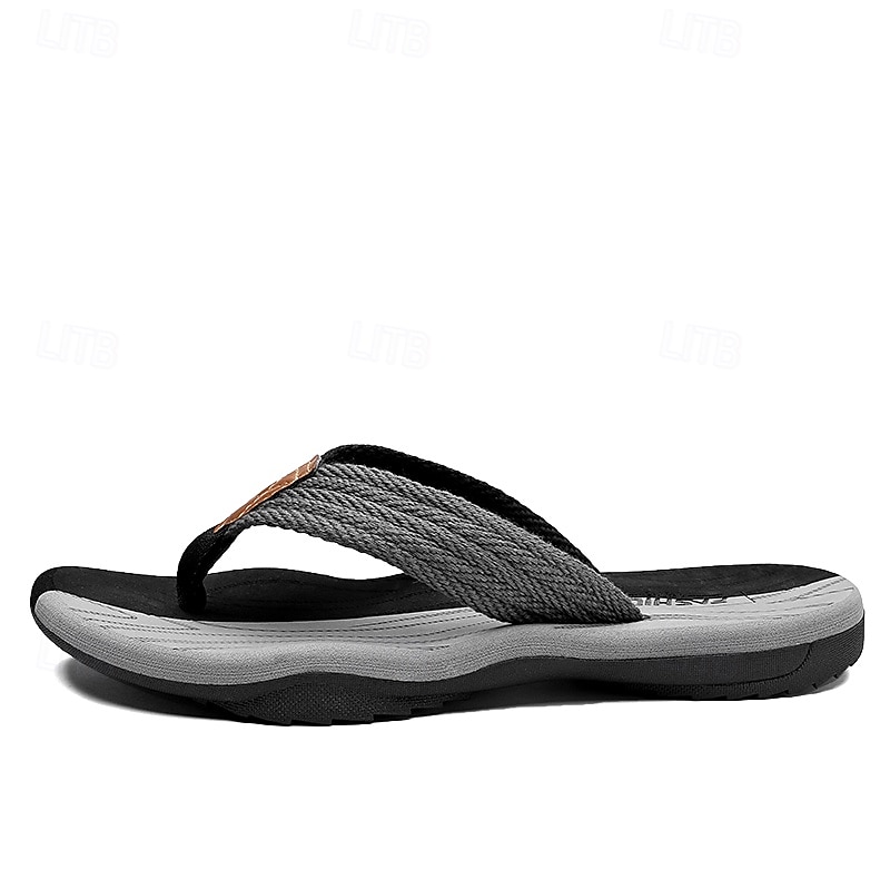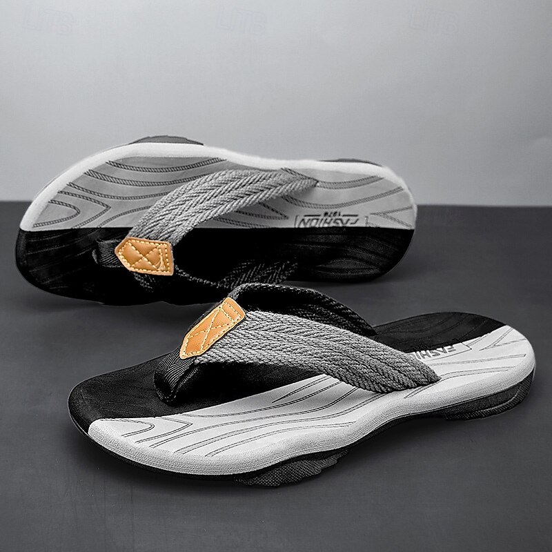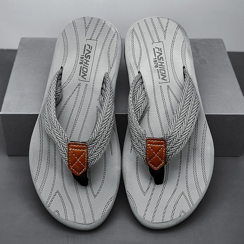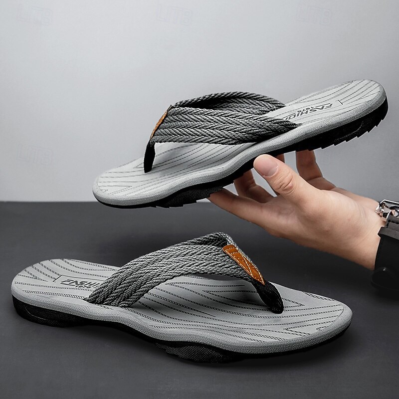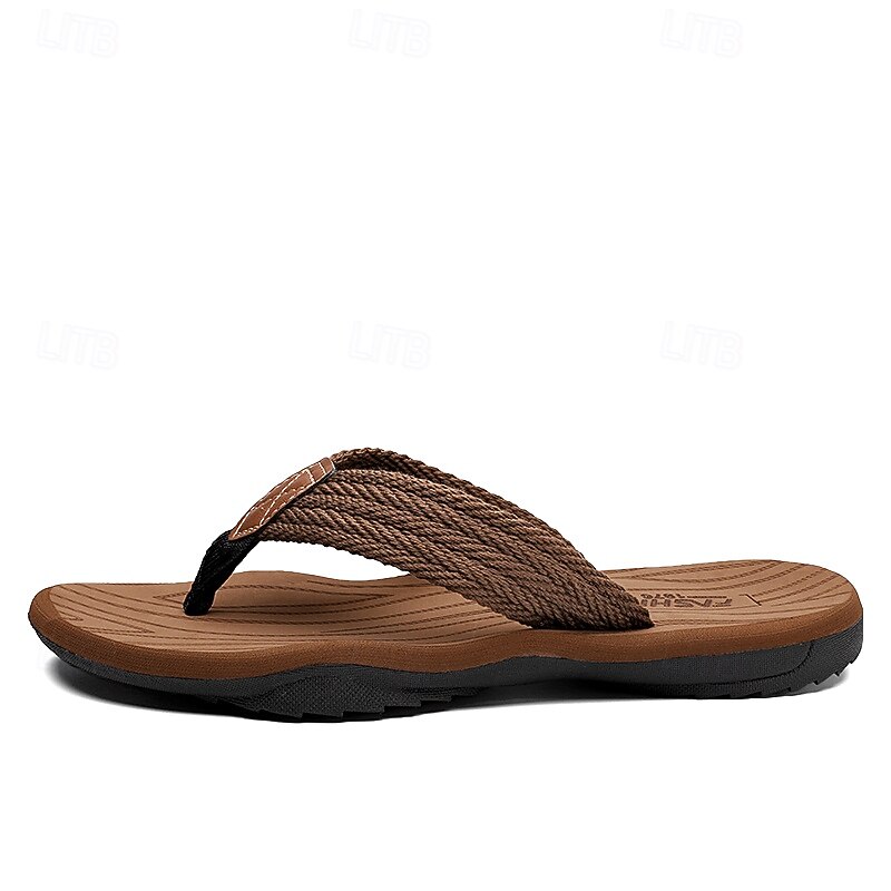 Men's Casual Flip Flops - Durable Textured Sole with Braided Straps for Beach, Pool and Everyday Summer Wear 35