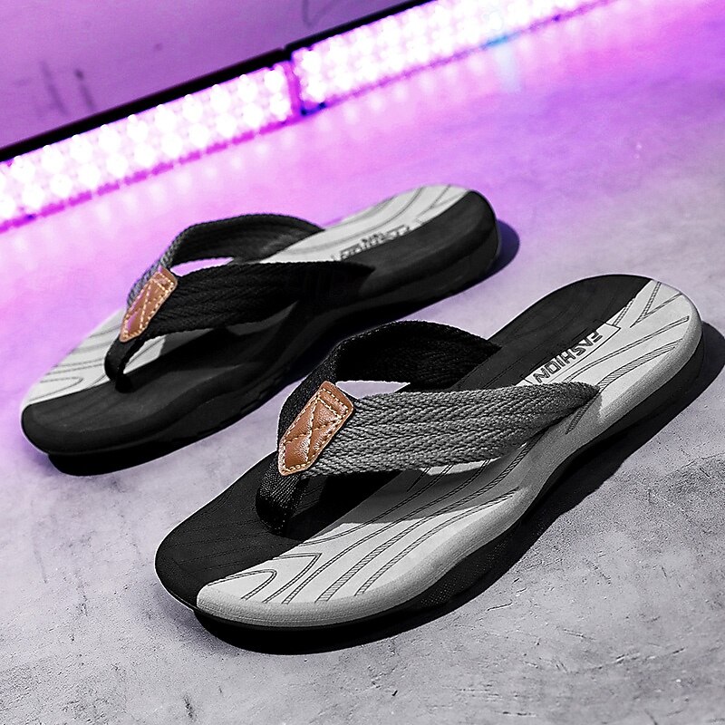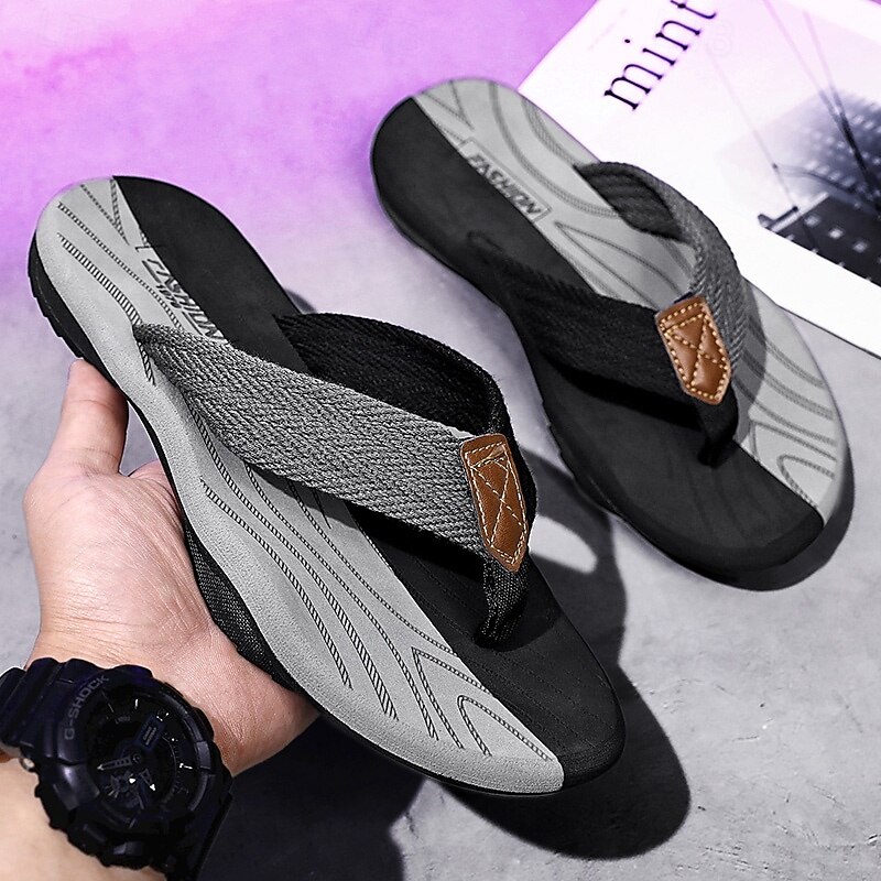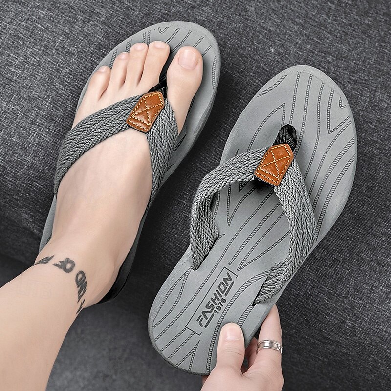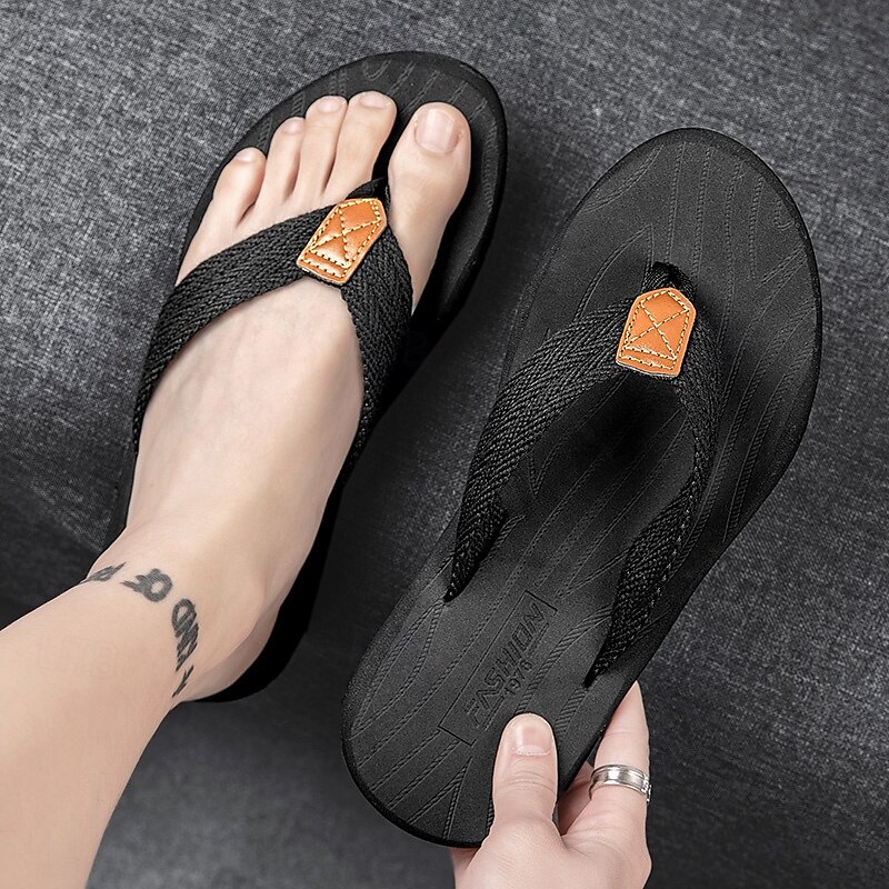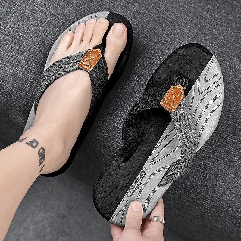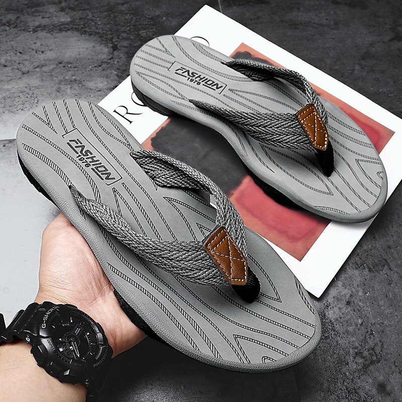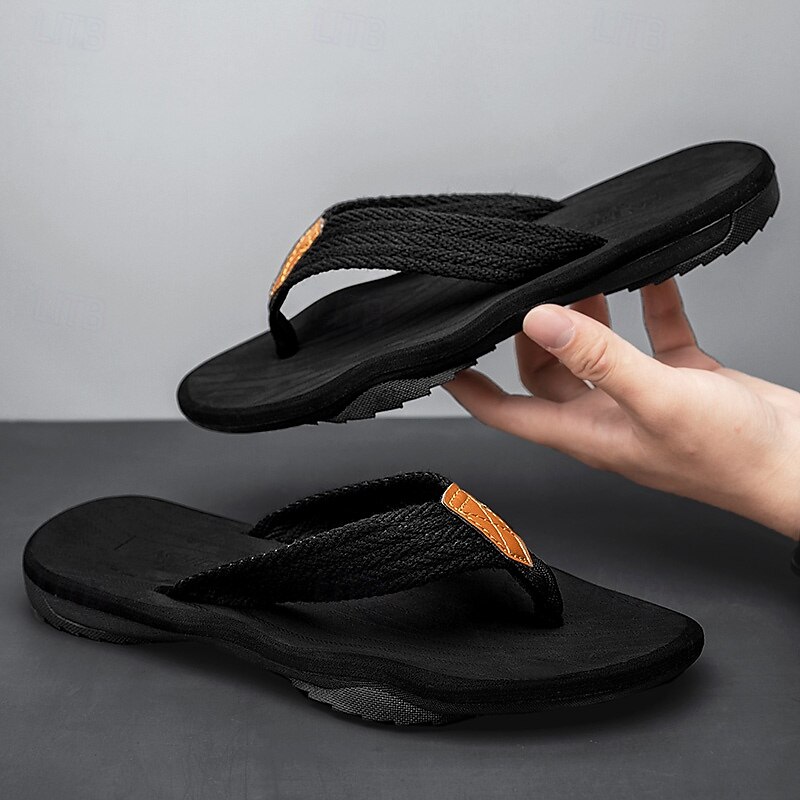 Men's Casual Flip Flops - Durable Textured Sole with Braided Straps for Beach, Pool and Everyday Summer Wear 35