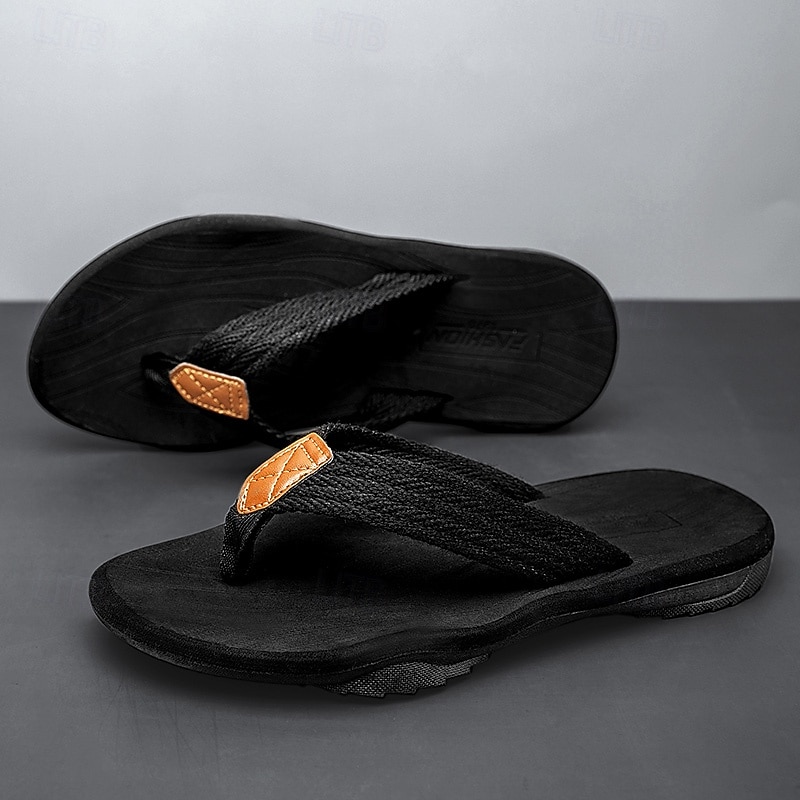 Men's Casual Flip Flops - Durable Textured Sole with Braided Straps for Beach, Pool and Everyday Summer Wear 36