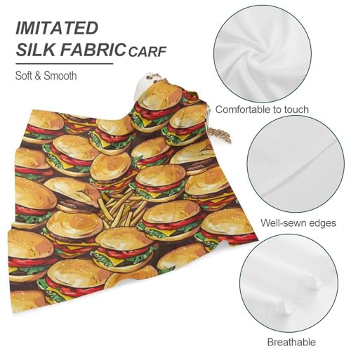 Hamburgers French Fries Square Head Scarves Cute Funny Hair Scarf Kerchief Neckerchief Headband Neck Wraps 3