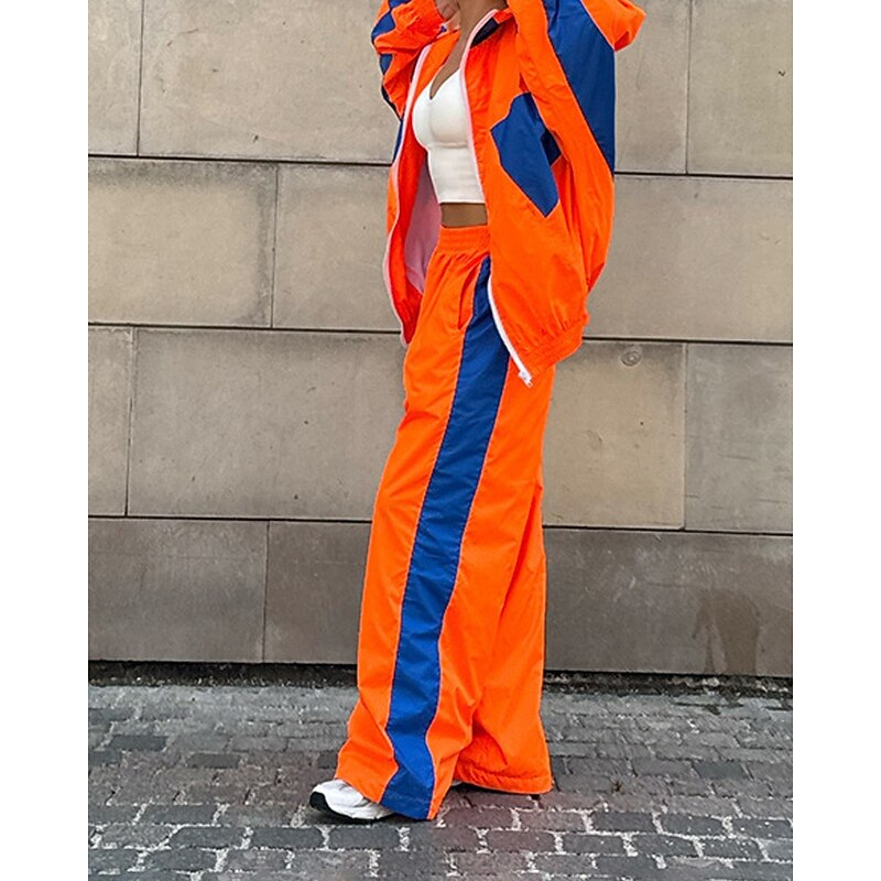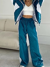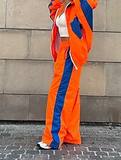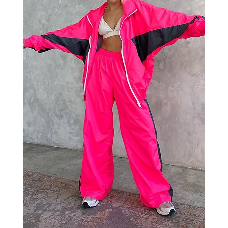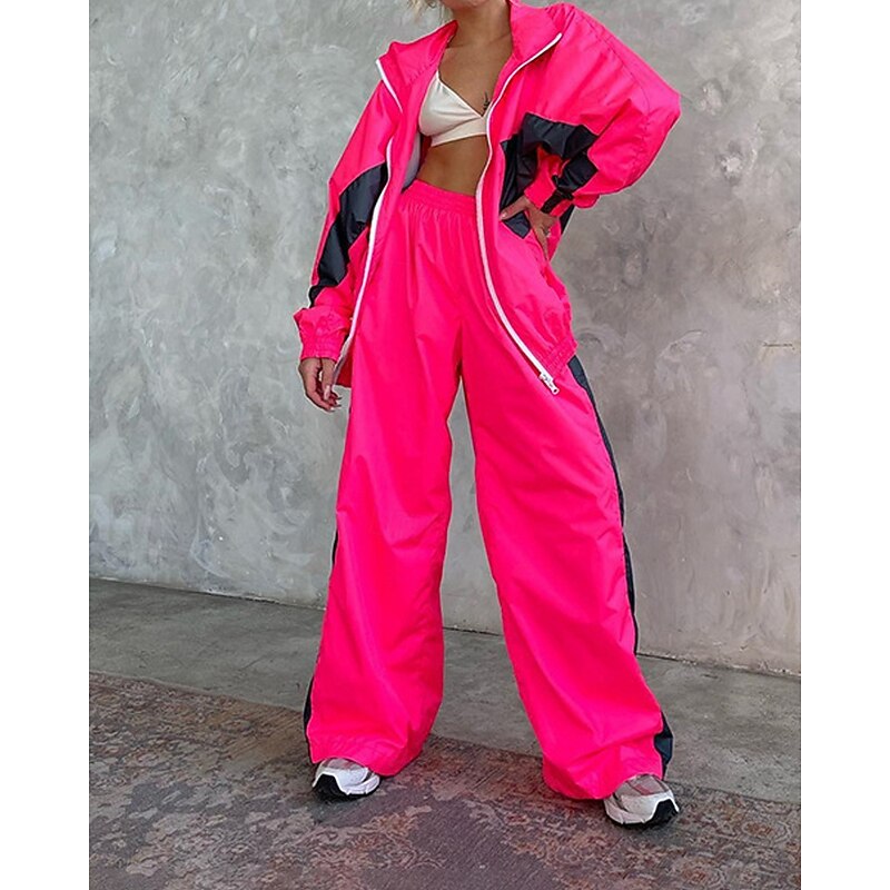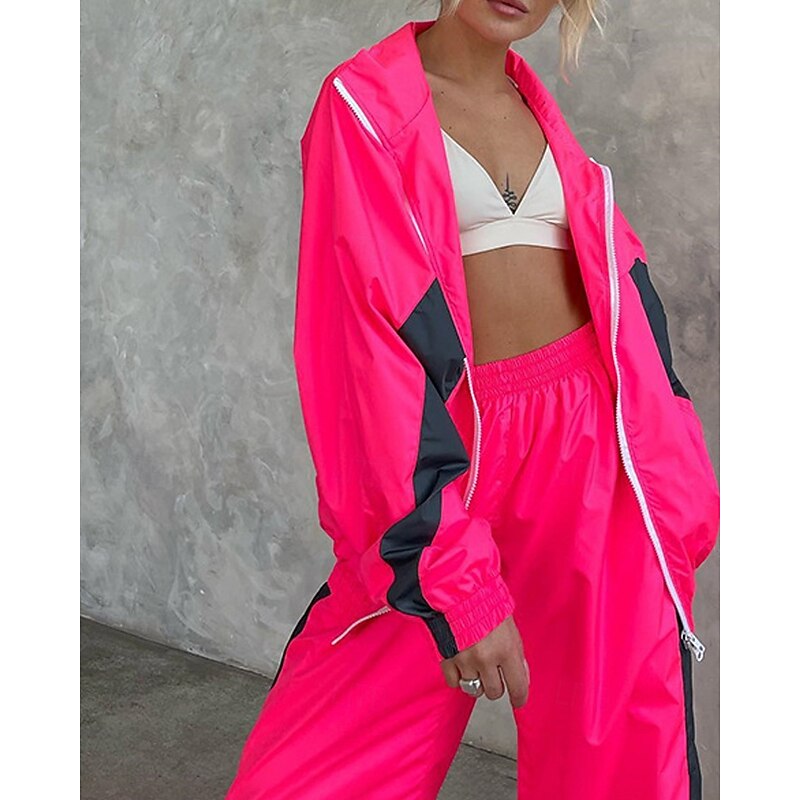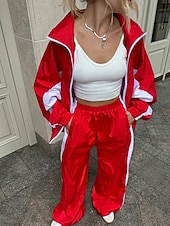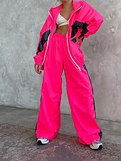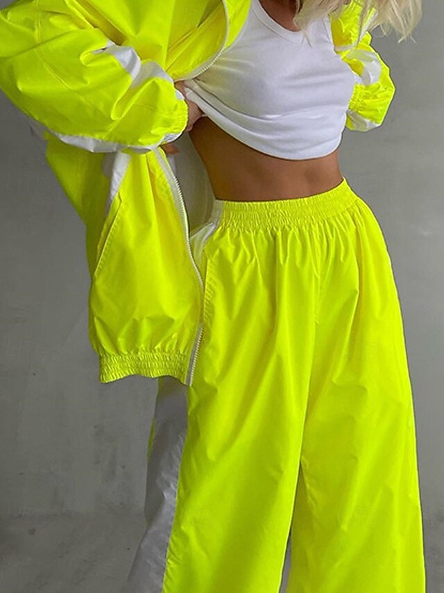 More information about Women's Active Fashion Blouse Pants Sets Sweatshirt Long Sleeve Shirt Collar Color Block Ruched Zipper Outdoor Holiday Going out Yellow Pink Army Green Fall Regular Fit