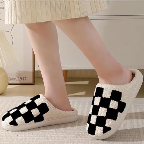 Checkered Slippers - Men & Women's Funny, Fluffy House & Outdoor Shoes - Memory Foam, Warm, Plush Bedroom Slippers for Winter 1