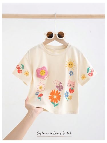 Floerns Toddler Girl's Summer T Shirts Short Sleeve Floral Crew Neck Cute Tee Shirts 4