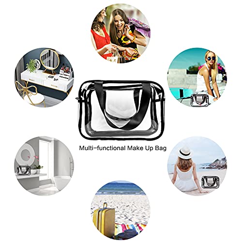 • Large Capacity Travel Bag -- This clear makeup pouch size: 12.6"x 6" x 8.7", has spacious space for vacation toiletries as shampoo, toothpaste, toothbrushes, shaving accessories, towels, etc. Suitable for your family trip to pack all men, women and kids toiletries.(Please allow 0.5 inches for manual measurement.)