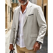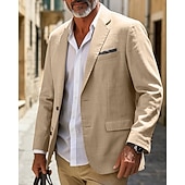 More information about Men's Linen Blazer Blazer Business Cocktail Party Wedding Party Fashion Casual Spring & Fall Polyester Linen Plain Pocket Buttons Comfortable Single Breasted Blazer White khaki Beige