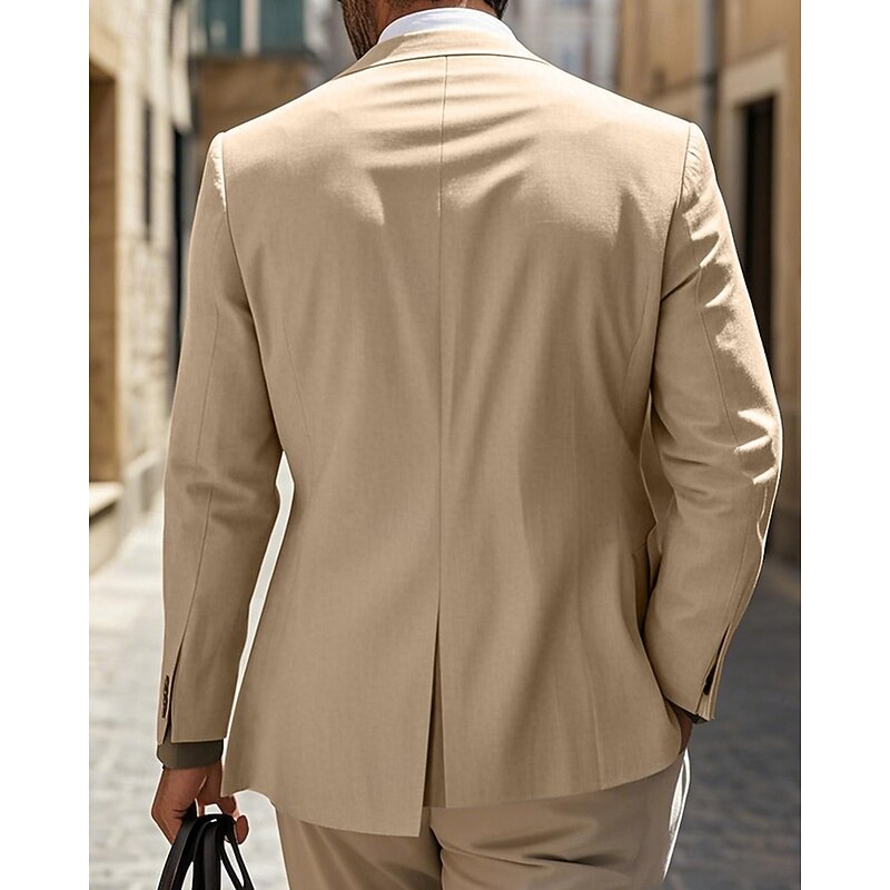 Men's Linen Blazer Blazer Business Cocktail Party Wedding Party Fashion Casual Spring &  Fall Polyester Linen Plain Pocket Buttons Comfortable Single Breasted Blazer White khaki Beige 2