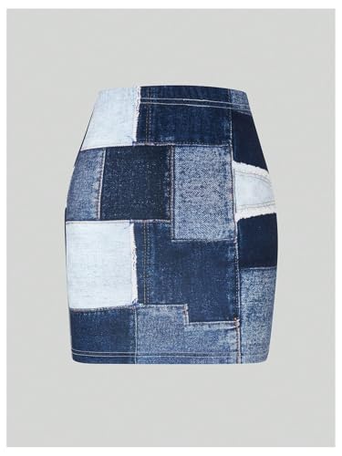 MakeMeChic Women's 2 Piece Outfit Plaid Colorblock Collared Button Down Shirt and Bodycon Skirt Set 6