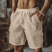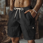 More information about Men's Cargo Shorts Sweat Shorts Shorts Beach Shorts Casual Shorts Elastic Waist Drawstring Multi Pocket Plain Comfort Breathable Knee Length Casual Daily Holiday Vacation Fashion Black White Inelastic