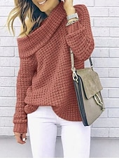 More information about Women's Sweater Casual Soft Pure Color Chunky Turtleneck Knitted Long Sleeve Regular Tops Knit Outdoor Daily Weekend Pink Red Fall Winter