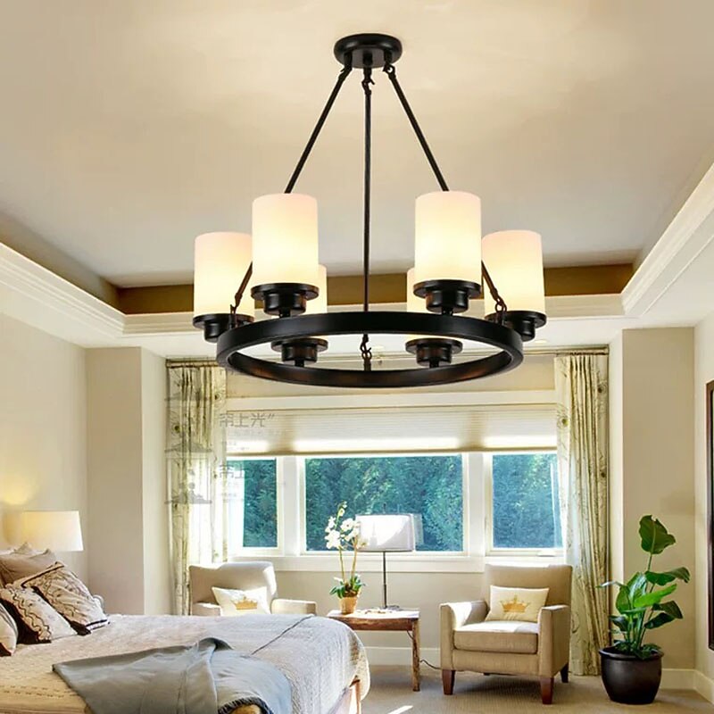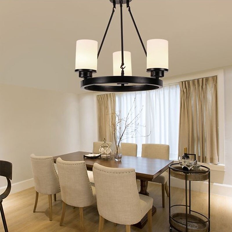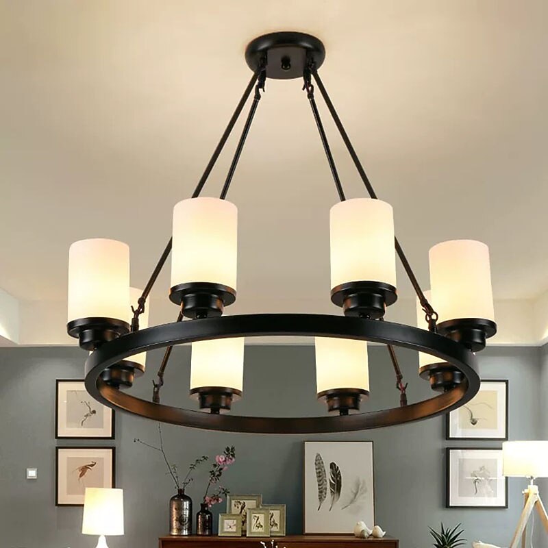 HOT ! Modern Farmhouse Chandelier Wagon Wheel Chandelier for Dining Room 3/6/8-Light with Frosted Glass Rustic Hanging Light Fixture