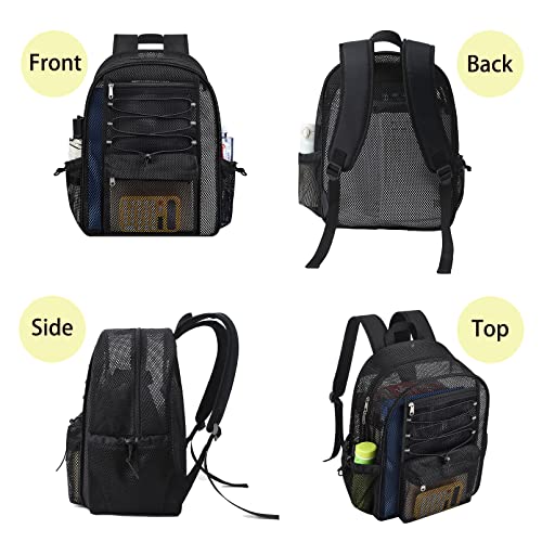 HOT ! Mesh Backpack Heavy Duty for School, 24L Large Mesh Bookbag for Adults, Black School Bag with Comfort Padded Straps for Work Swimming Beach Fitness Sport