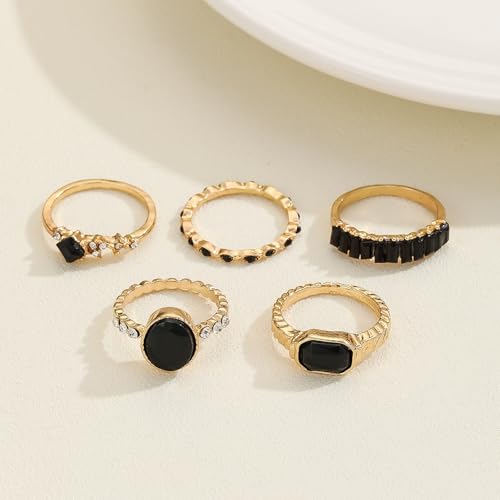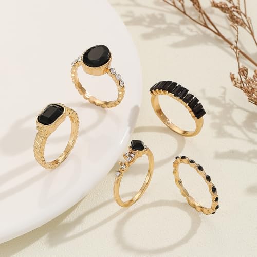 Black Ring 5pcs Ring Set Gold Rings Boho Statement Rings Stacking Wedding Rings Engagement Ring for Women Anniversary Birthday Gifts 5