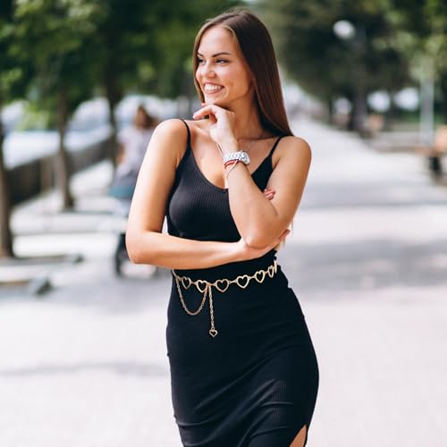 More information about Chain Belts For Women Fashion Waist Chain Rhinestone Gold Belts Adjustable Metal Body Belly With Heart Design For Dress Jeans Bikini Jewelry Heart Waist Bikini Chains