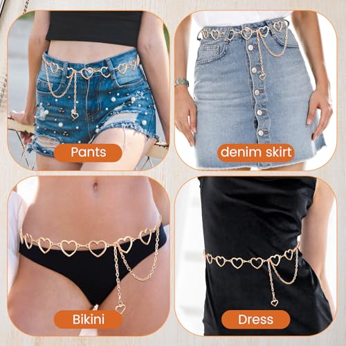 Chain Belts For Women Fashion Waist Chain Rhinestone Gold Belts Adjustable Metal Body Belly With Heart Design For Dress Jeans Bikini Jewelry Heart Waist Bikini Chains 4
