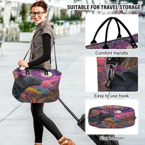 HOT ! Black Leopard Moonlit Floral Travel Duffel Bag for Men Women with Makeup Bag Weekend Overnight Carry On Bags for Yoga Travel Gym