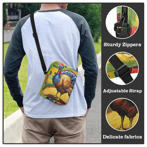 More information about Crossbody Sling Bag for Women Men, Zipper Closure Messenger Bags Turkey Abstract Artist Print with Card Phone Passport Compartment 6.6×9.4×2.5 IN