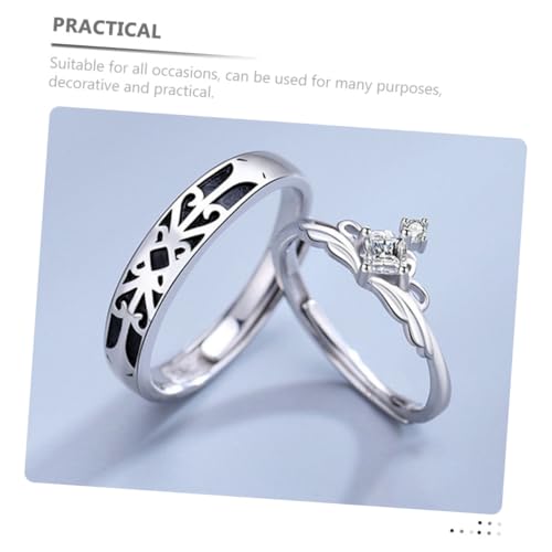 1Pair Couple Rings Adjustable Open Ring for Him and Her Finger Jewelry Stylish Wedding Promise Rings Delicate Occasions 3