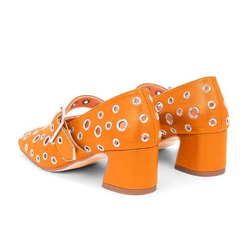 Women's Square Toe Mary Jane Pumps with Studded Metal Grommet Block Heel Buckle Strap Shoes 5