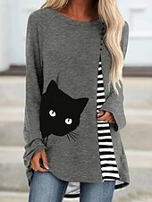 More information about Women's T Shirt Graphic Animal Geometric Vintage Stylish Classic Long Sleeve Crew Neck Round Neck Long Tops Daily Print Gray Spring Fall