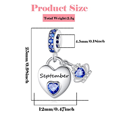 • 👑Timeless and Modern Design:👑 Trendy yet timeless Love heart style dangle charms with a delicate crown decor add a touch of fashion and delicate feeling. September birthstone charm as a symbol of loyalty, love and truth, 925 sterling silver charms is an ideal choice as for birthday gifts.