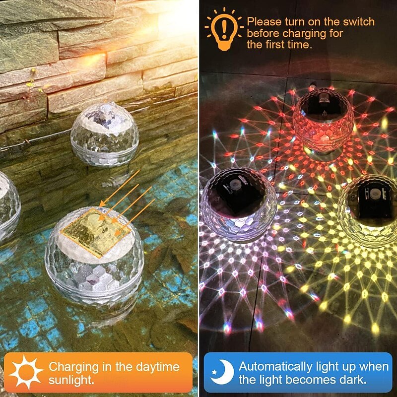 HOT ! Solar Floating Pool Lights, Submersible LED Lights with RGB Color Changing, LED Waterproof Pool Lights for Outdoor Lighting Garden Backyard Lawn Path Wedding Party Pool Decoration 1/2Pcs