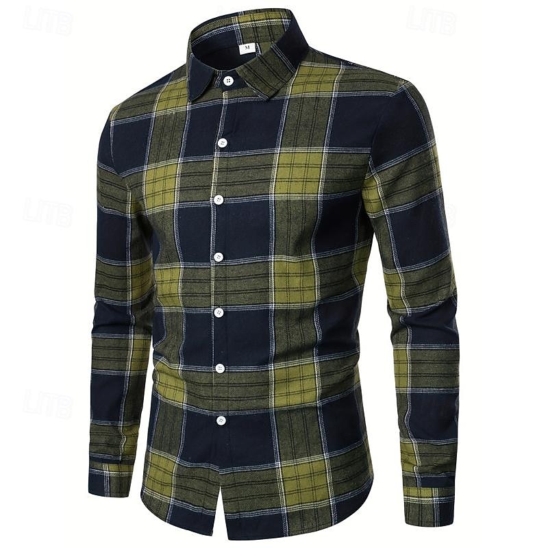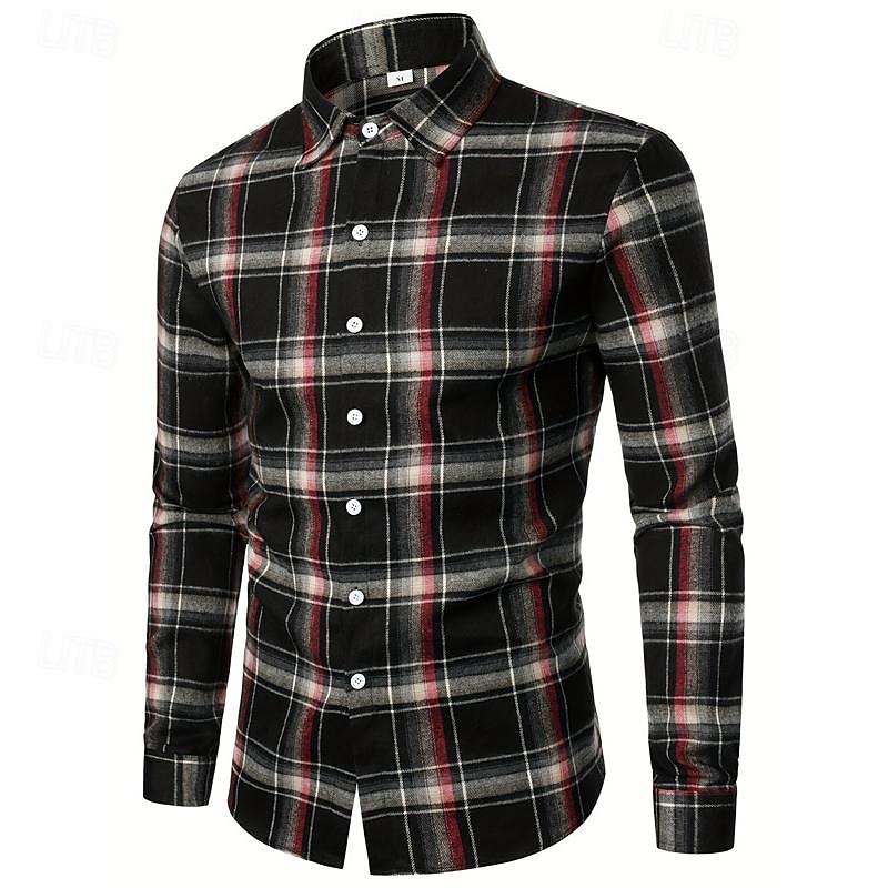 More information about Men's Shirt Dress Shirt Button Up Shirt Plaid Wedding Party Light Yellow Black Red Green Long Sleeve Lapel Spring & Fall Clothing Apparel
