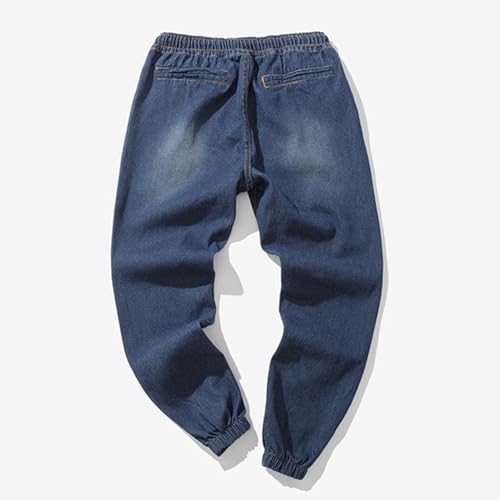 Denim Pants for Men Baggu Classic Casual Plus Size Jeans Pants Elastic Waist Drawstring Stretch Jorts with Pockets Streetwear 5