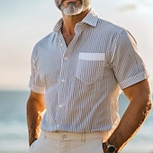 More information about Men's Shirt Linen Shirt Summer Shirt Dress Shirt Beach Shirt Button Up Shirt Striped Vacation Daily Wear Blue Short Sleeve Turndown Summer Clothing Apparel Front Pocket