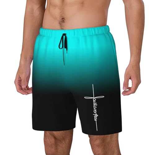 Men's Swim Trunks with Compression Liner Bathing Suit Faith Over Fear Bible Scripture Verse Christian Beach Shorts, 7