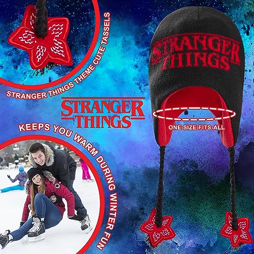 Stranger Things Beanie Hat with Ear Flaps for Kids and Teenagers - One Size Children's Winter Hats - Gifts for Kids Black/Red 6