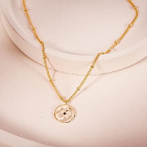 espere Rhodium Plated Gold Coin Pendant Necklace 20 Inch | Small Medallion Gold Pandent Necklace Long for Layering 3