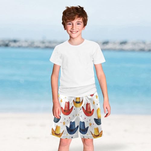 Boys Beach Board Shorts Cowboy Hat Star White Swim Trunk Teen Swimwear 5