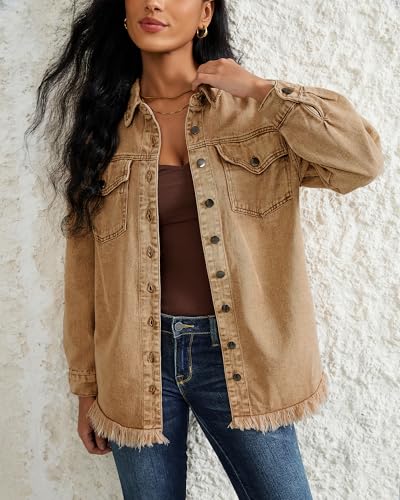 More information about LookbookStore Jean Jacket Women Trendy Oversized Button Down Long Sleeve Frayed Hem Denim Shirt Jackets Distress Shacket