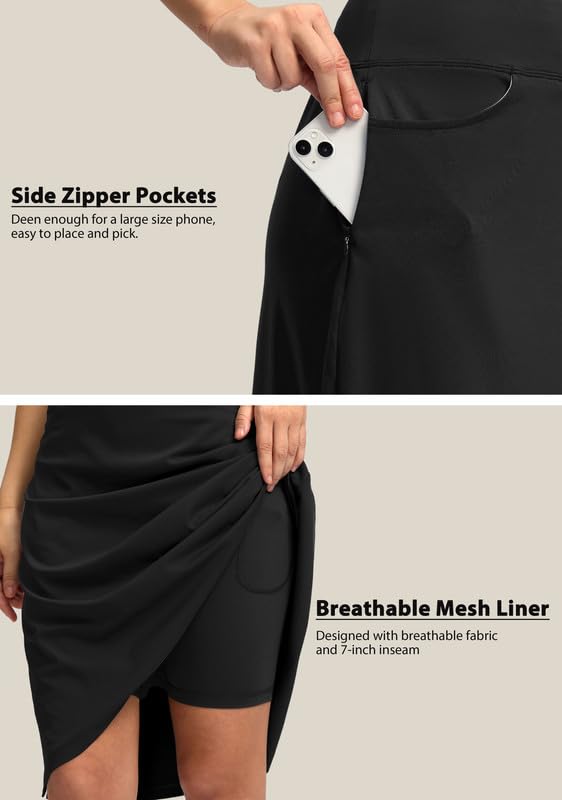 HOT ! Viodia 25" Knee Length Skorts Skirts for Women with Zipper Pockets Stretchy Modest Aline Midi Skort for Casual Summer Travel