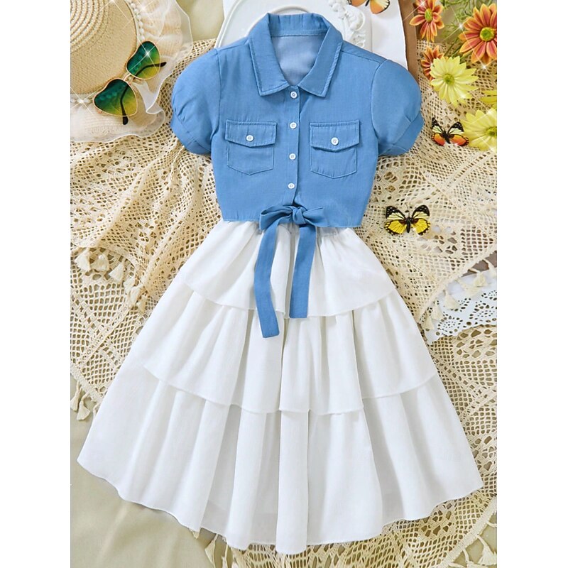 More information about 2 Pieces Kids Girls' Solid Color Dress Suits Set Sleeveless Fashion School 7-13 Years Summer White