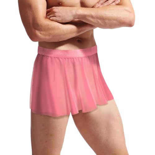 • Design: Men's sissy lingerie, low waisted sissy skirt, solid color, elastic waistband offers a relaxing fit. Sheer see thru design, mesh ruffle mini skirt for men, for cosplay or lingerie party.