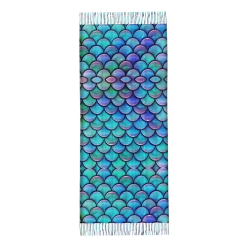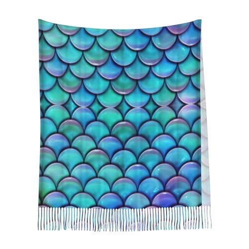 • It Is 77.6" X 28.3” With Fringes,Our Mermaid Teal Fish Scale Print Women'S Scarf Is Large Enough For Most Women And Girls. And The Super Soft And Breathable Cashmere Feel Winter Accessory Can Be Worn As A Scarf, A Shawl, Or A Stole.